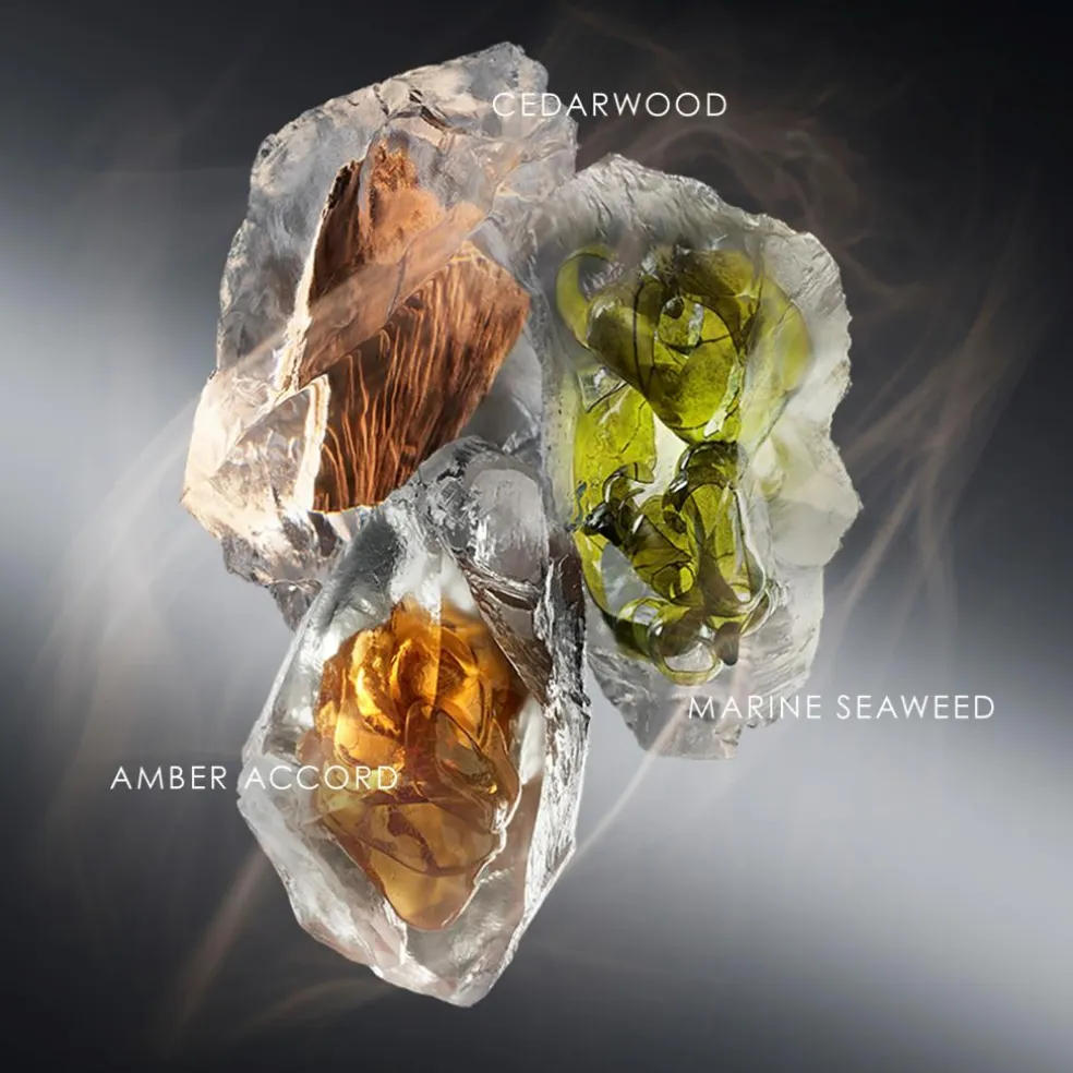Fremkalder bevægelse fra hav til land og balancerer rå naturelementer med urban elegance. Bygger på to kontrastfulde poler: en frisk saltakkord fra havet og varme, røgede trænoter fra jorden. Resultatet er en sensuel, langvarig duft til den uafhængige mand, der bevæger sig frit mellem kyst og by.