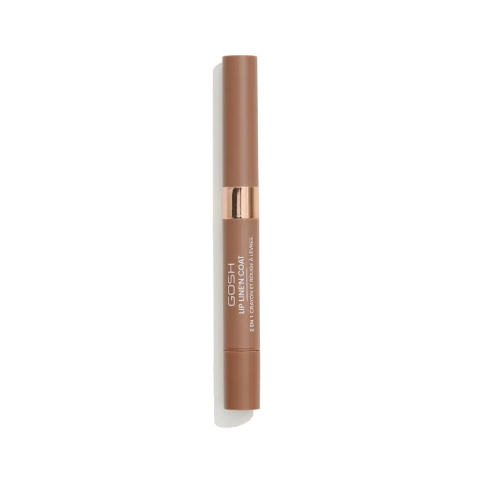 LIP LINE’N COAT er et to-i-et produkt med en lip liner i den ene ende og en mat coating i den anden.