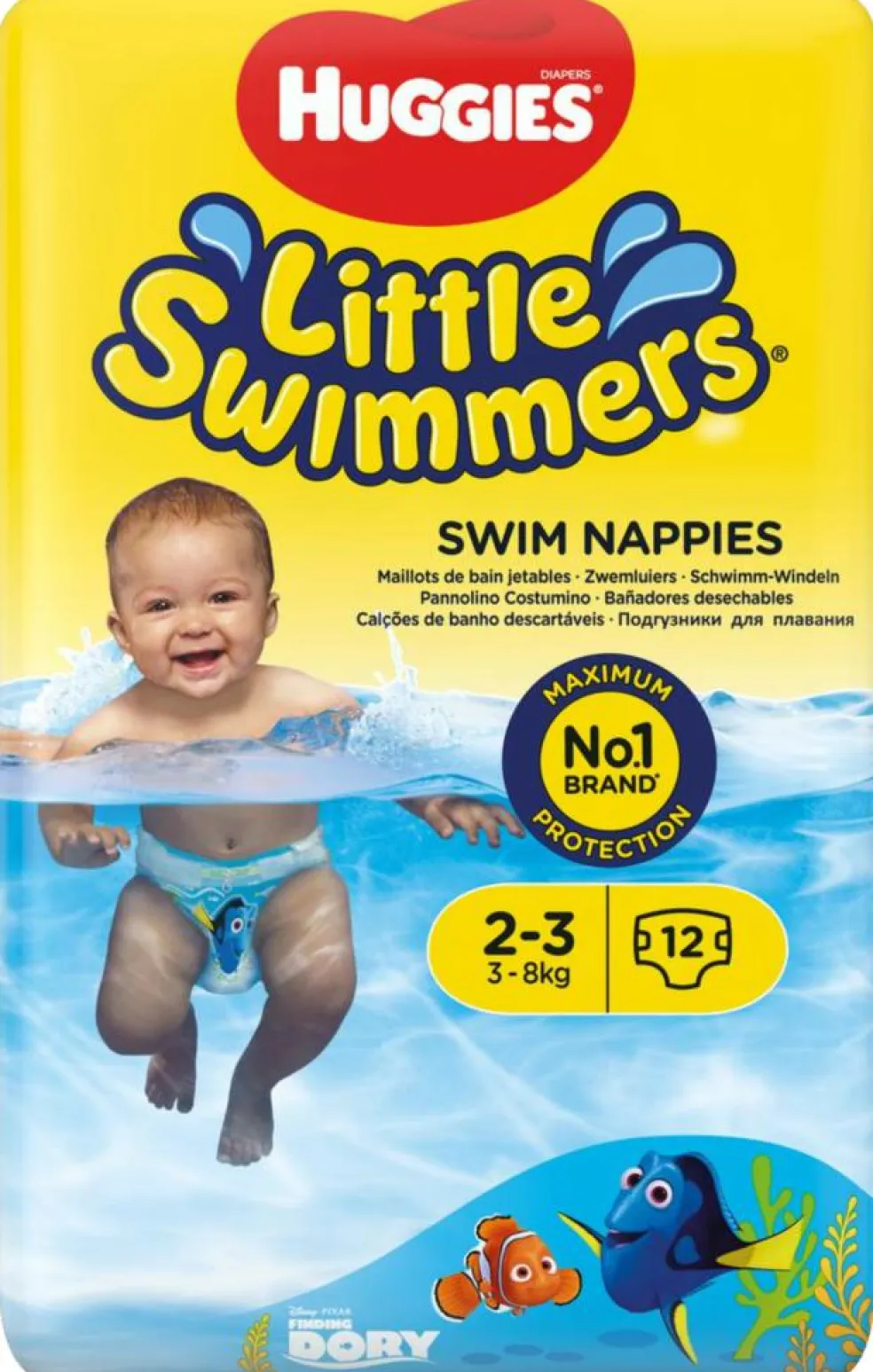 Huggies Little Swimmers svømmebleer forhindrer små uheld i vandet. I modsætning til almindelige bleer svulmer Huggies svømmebleer ikke op i vand, og de nemme at tage af og på. Svømmebleerne er lavet i et super absorberende materiale, har specielle lækagebarrierer og ligner rigtigt badetøj.