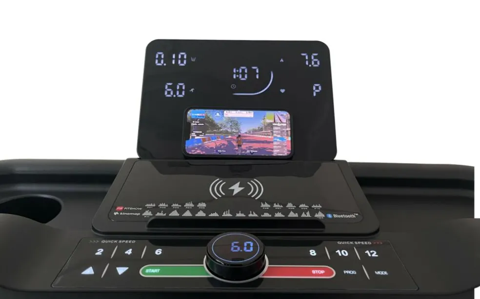 For en mere underholdende træningsoplevelse, er løbebåndet udstyret med Bluetooth-højttalere, så du kan lytte til din yndlingsmusik eller podcast, mens du træner.
