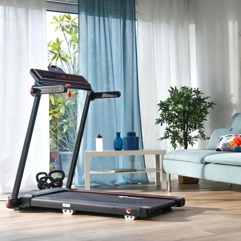 Det intuitive LED-display med touchknapper holder styr på din træning i realtid. Overvåg din hastighed, tid, distance og kalorier med lethed. TM 850 er designet til at passe ind i selv de mindste rum. Dette ultrakompakte løbebånd er perfekt til hjemmetræning uden at gå på kompromis med ydelse. Spar tid og besvær med enkel samling.