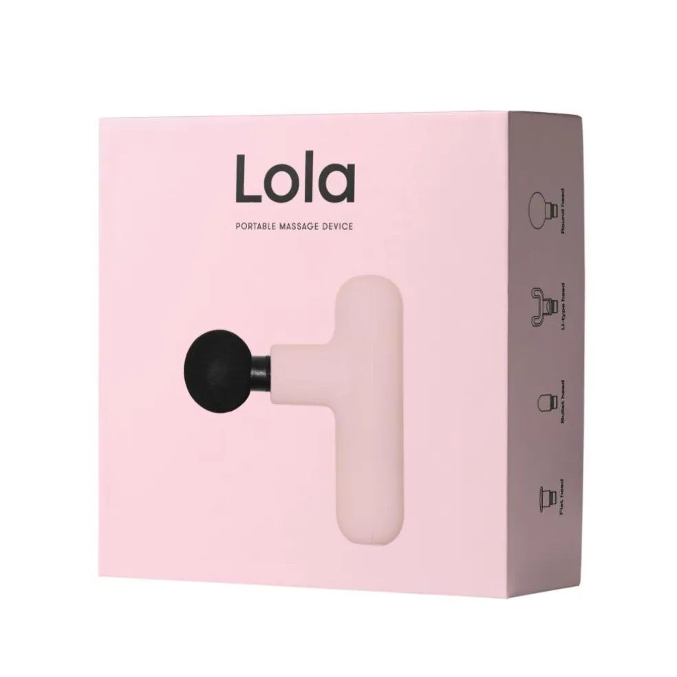 Indeholder: Lola Massage Gun, 4 Massagehoveder, USB Ladekabel, Stofpose