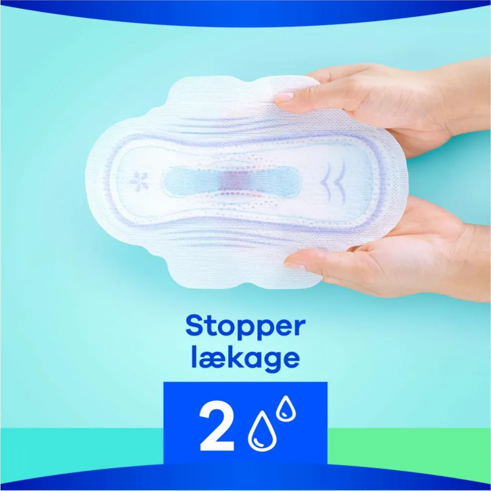 - Superabsorberende kerne med InstantDry-system absorberer væske på sekunder og holder det væk fra huden