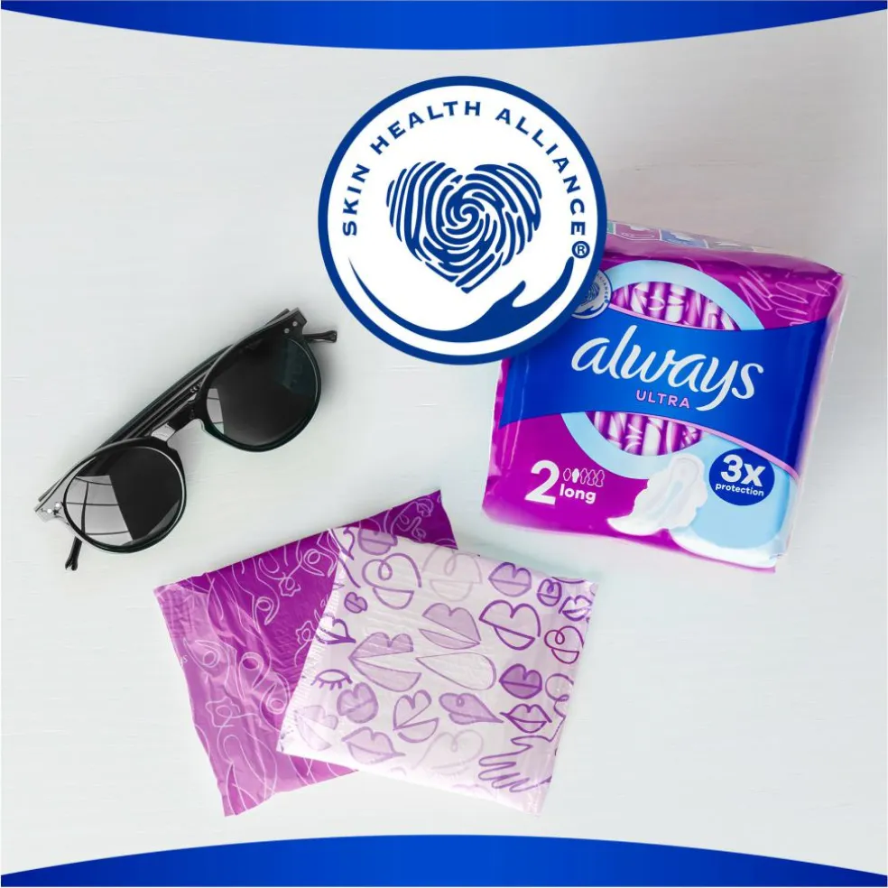 - Always Ultra bind er dermatologisk testet til at være nænsomme mod huden