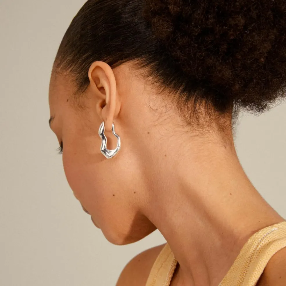 Free yourself! Gå aldrig ned på accessories med de sølvbelagte øreringe fra Pilgrims LOULIA serie. Et nyt take på de klassiske hoops, der her har fået et wavy design med et swanky organisk silhouette. Øreringene har en letanvendelig klik-lås og er lavet af 99% genanvendt materiale.