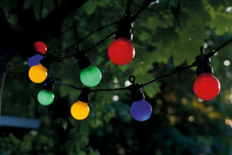 Ideel til gadefester, børnefødselsdage, en hurtig og flot måde at få en festlig stemning på. Lyskæden er til både indendørs og udendørs brug.