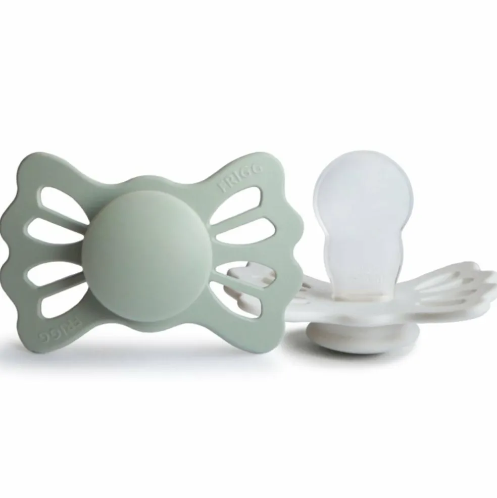 FRIGG Lucky-sutten har en symmetrisk form med en let fladtrykt og dråbeformet suttedel. Denne symmetriske form sikrer, at sutten altid passer korrekt i babys mund, uanset om den vender opad eller nedad.