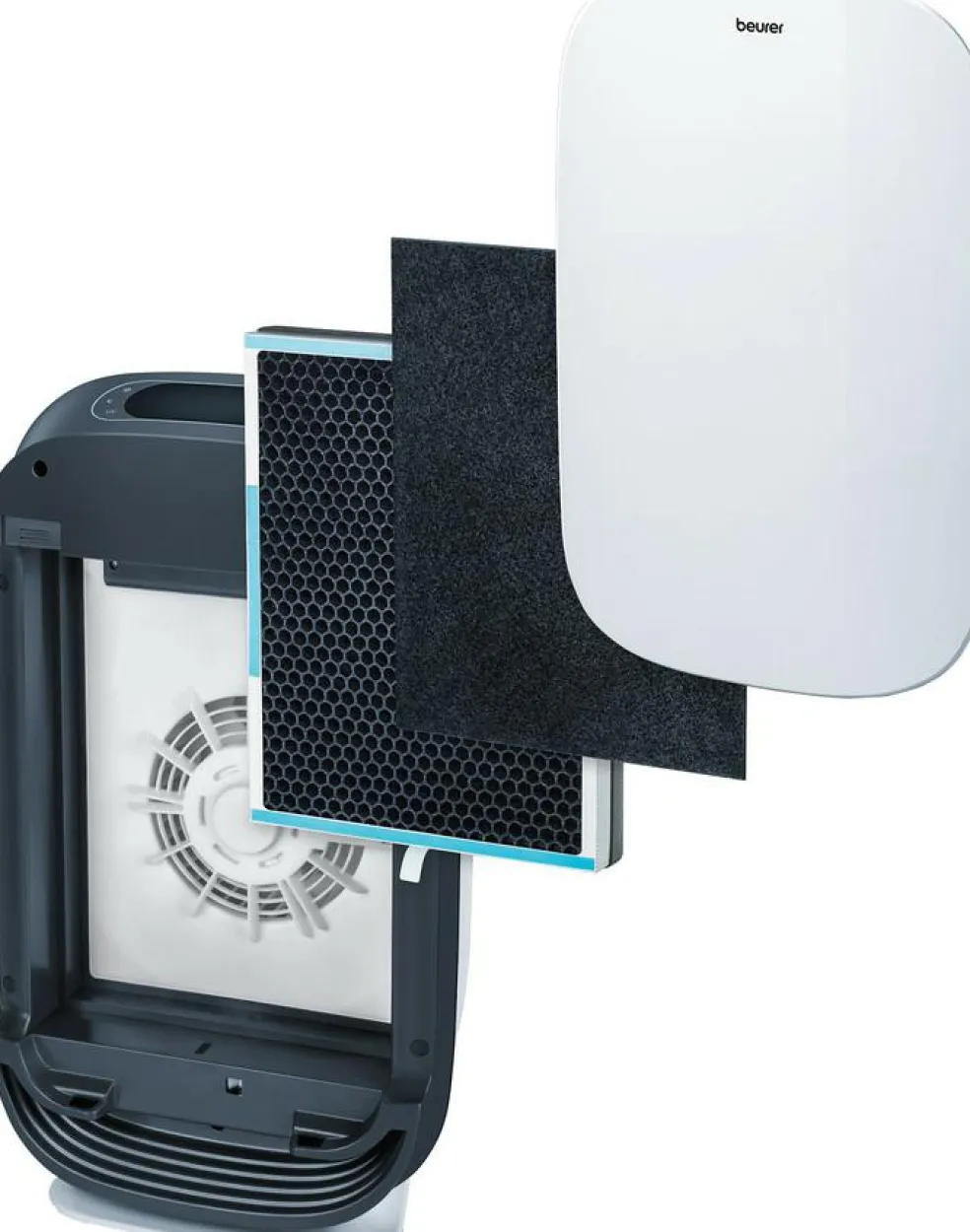 Denne luftrenser renser luften gennem et 3-lags filter, som består af et præ-filter, et kulfilter og et HEPA 13 filter.