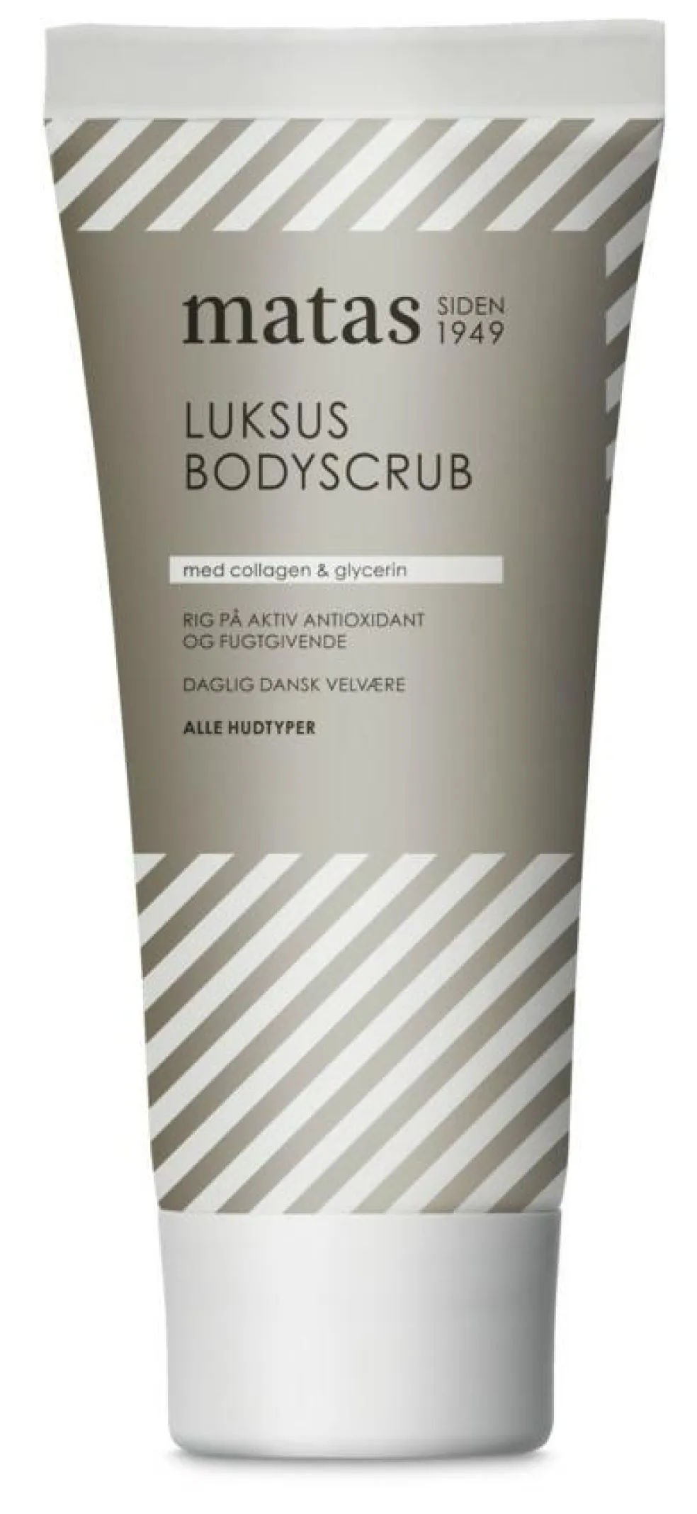 Brug Matas Luksus Bodyscrub i badet 1-2 gange om ugen og massér let ind med cirkelbevægelser over hele kroppen.