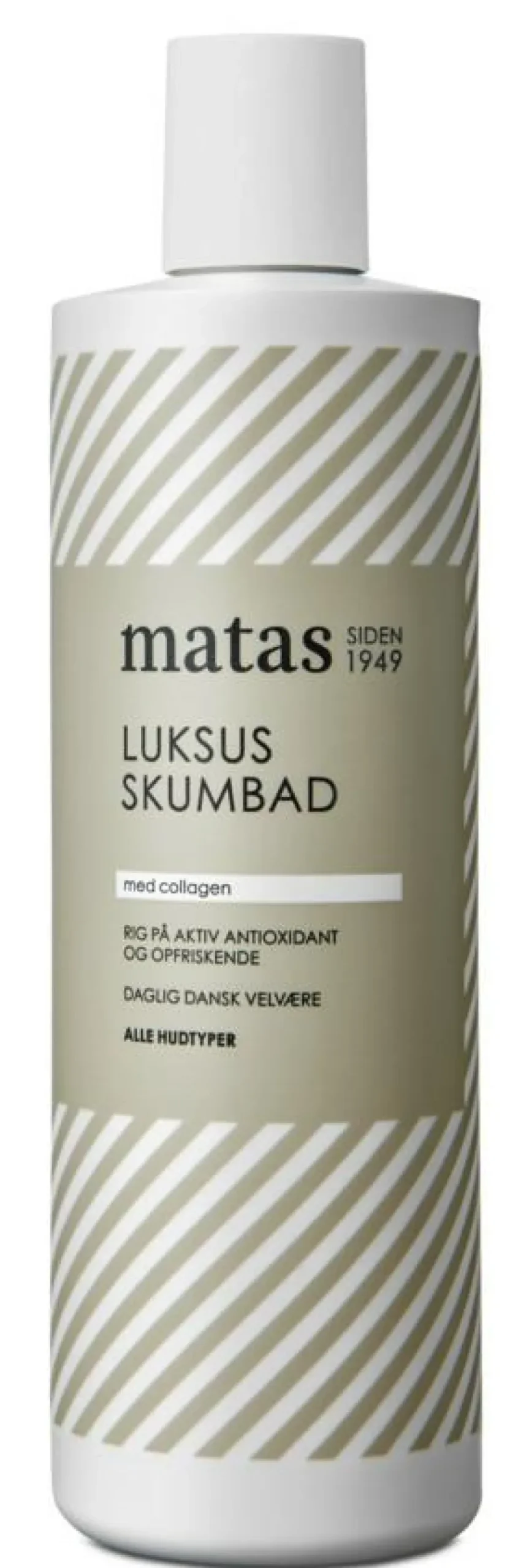 Matas Luksus Skumbad er en skøn og skummende sæbe, der gør karbaddet ekstra skønt. Luksus Skumbad er beriget med antioxidativ collagen, som hjælper til at beskytte hudens naturlige barriere, så huden bliver frisk og velplejet.