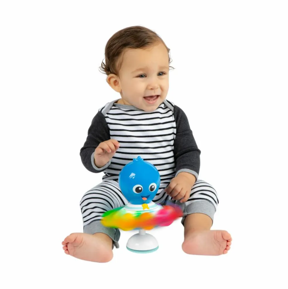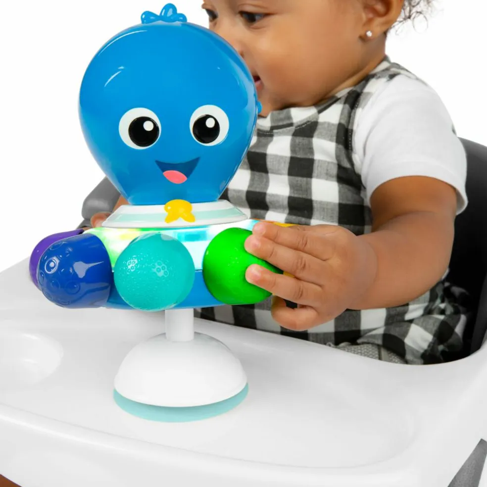 Legetøjet underholder dit barn både derhjemme og på farten. Dit barn vil elske at se blæksprutten Opus lyse op og dreje sine tentakler ved hvert tryk, og barnet vil nyde at udforske legetøjets teksturer, lyde og klare farver.
