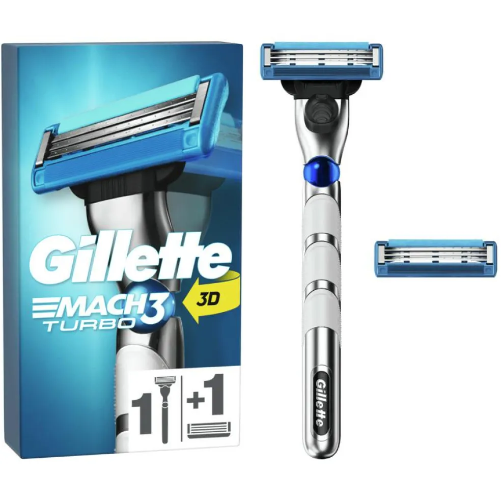 Gillette Mach3 Turbo-barberskraber til mænd leverer en præcis og klassisk barbering, du kan stole på. Med ergonomisk håndtag med 3D-bevægelse, der tilpasser sig dit ansigt og giver en tæt og effektiv barbering af hele ansigtet. Med tre stærkere end stål-blade, der holder sig skarpere længere (vs. Sensor3) er det ikke underligt, at det er den foretrukne skraber med tre blade i verden (beregning fra Procter & Gamble baseret på Nielsens salgsoplysninger fra september 2018 til august 2019. Blandt skrabere med tre blade, til mænd).