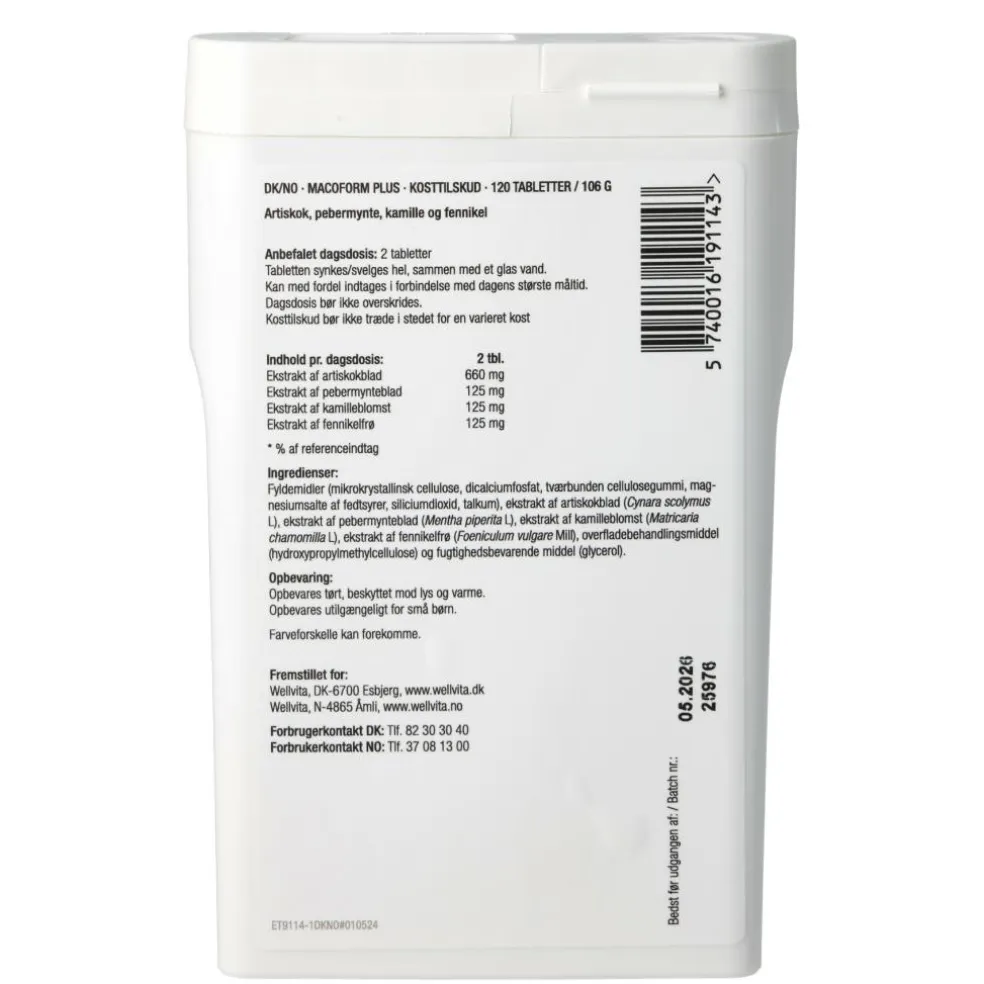 | Ekstrakt af artiskokblad | 660 mg |
