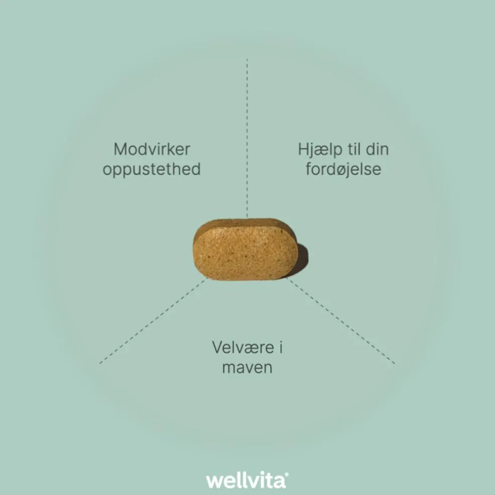 Fennikelfrø, kamilleblomst og pebermynteblad i kombination bidrager til at vedligeholde normal fordøjelse og give velbehag i maven.