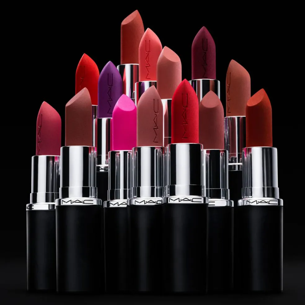 LUKSURIØST look med et højglans emballagedesign på ydersiden og en M·A·C-præget patron på indersiden.