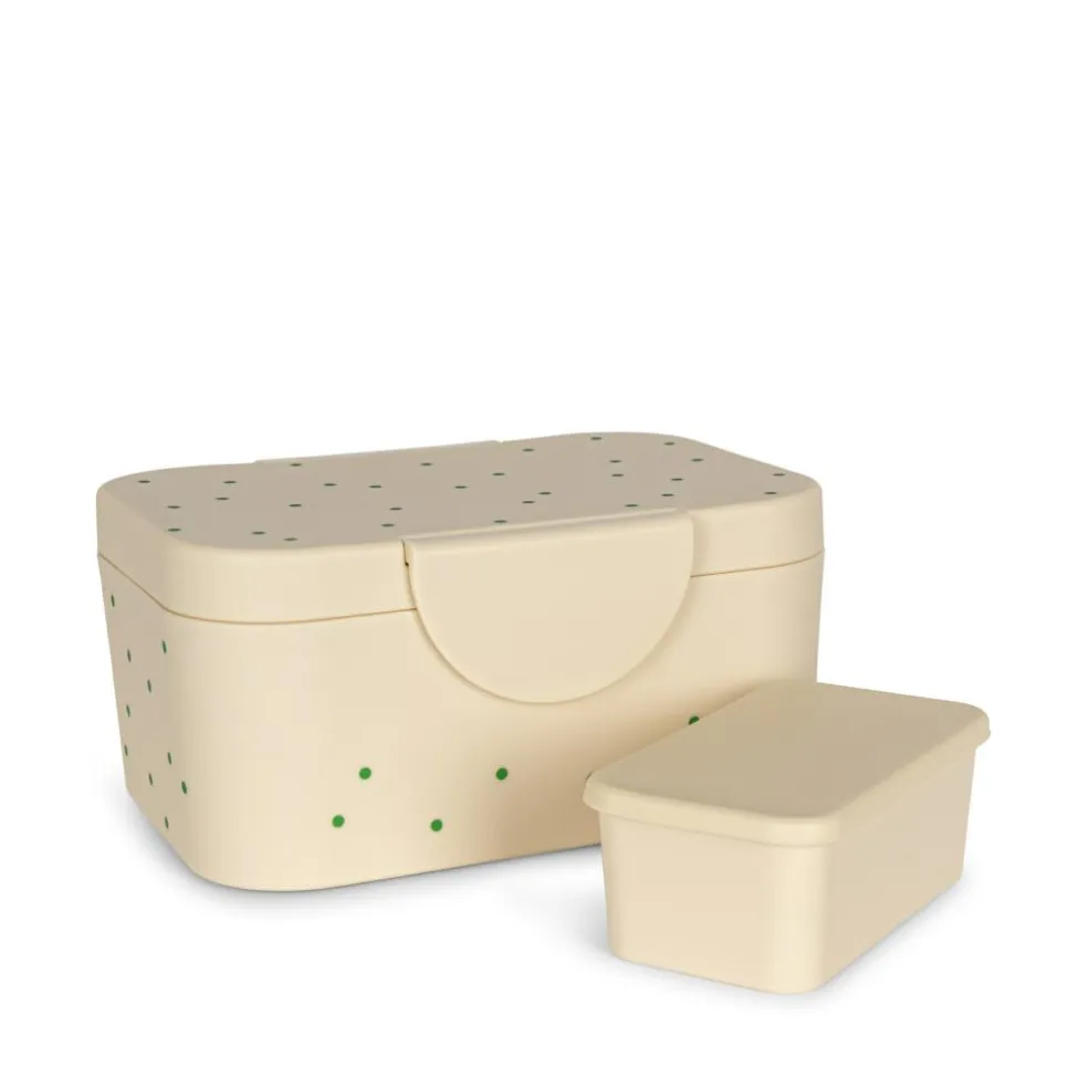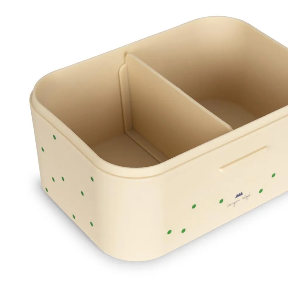 Madkassen har en praktisk inddeler i det store rum og der medfølger en mindre kasse i PLA med silikonelåg.