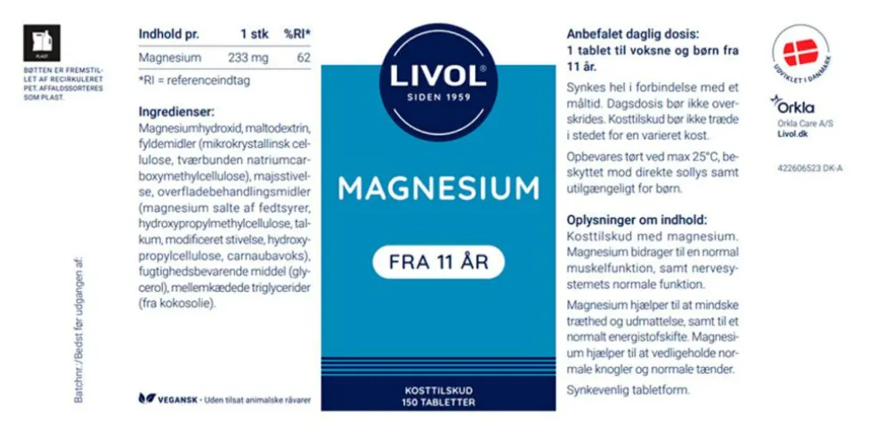 Anbefalet daglig dosis: 1 tablet til voksne og børn fra 11 år. Synkes hel i forbindelse med et måltid.