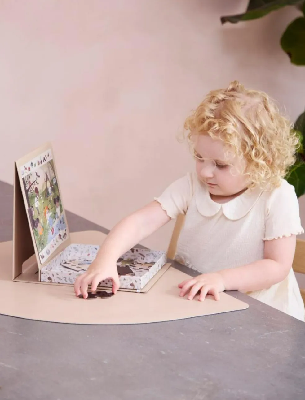 Det praktiske magnetpuslespil med de farverige, håndtegnede motiver træner dit barns finmotorik og inviterer til ro og afslapning efter en lang dag.