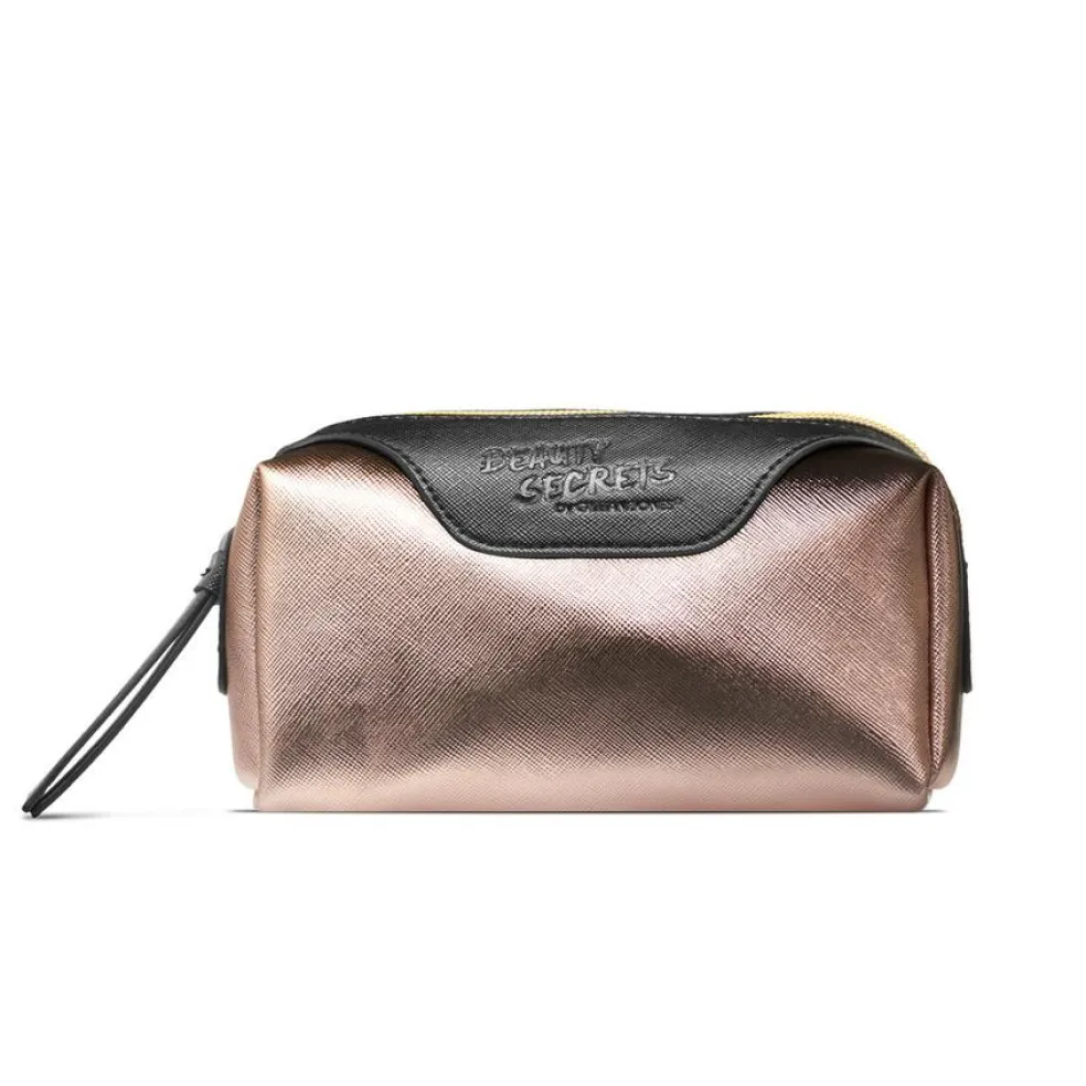 Gillian Jones makeup pung i smukt changerende rose-gold PU, med præget “”Beauty Secrets”” logo på fronten.