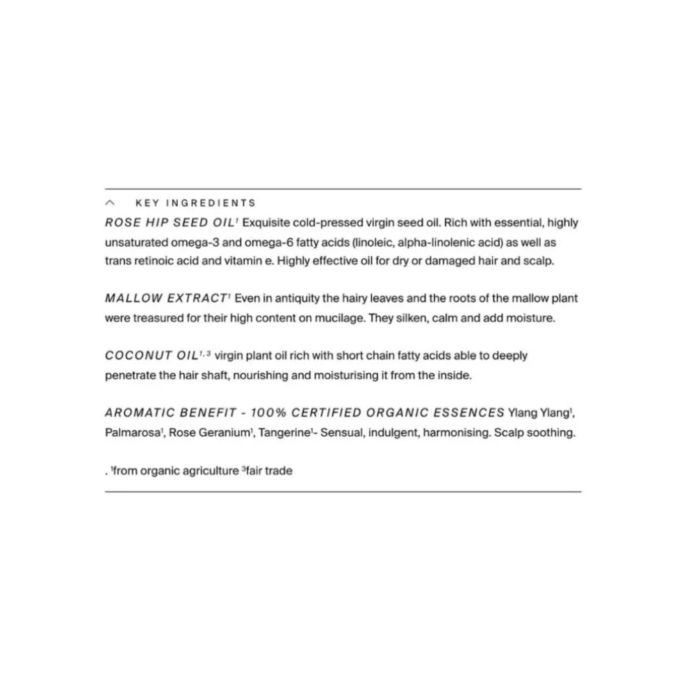 Denne eksklusive, plejende og økologiske Mallowsmooth shampoo er særdeles nærende til det tørre og ødelagte hår. Håret bliver blødt og glansfuldt igen og genopbygger hårets oprindelige struktur og beskytter mod udtørring.