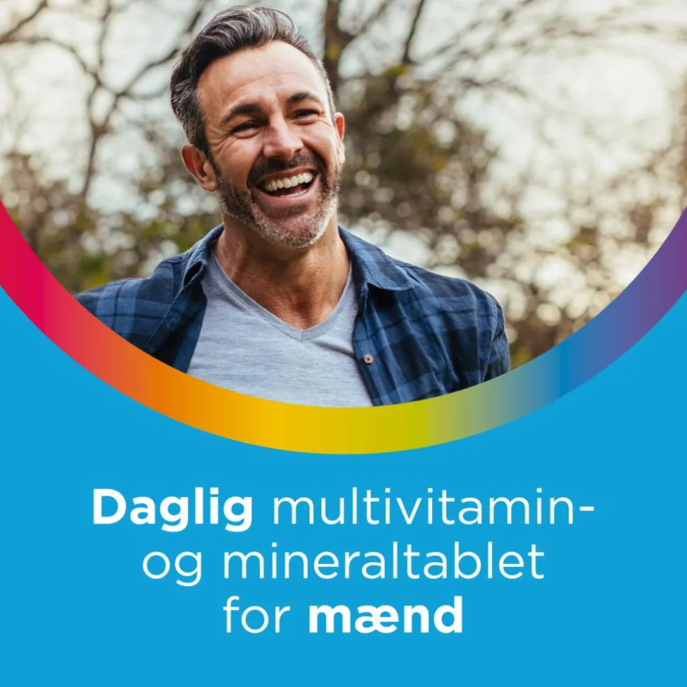 Multi-tabs Man indeholder magnesium som bidrager til normal muskelfunktion.