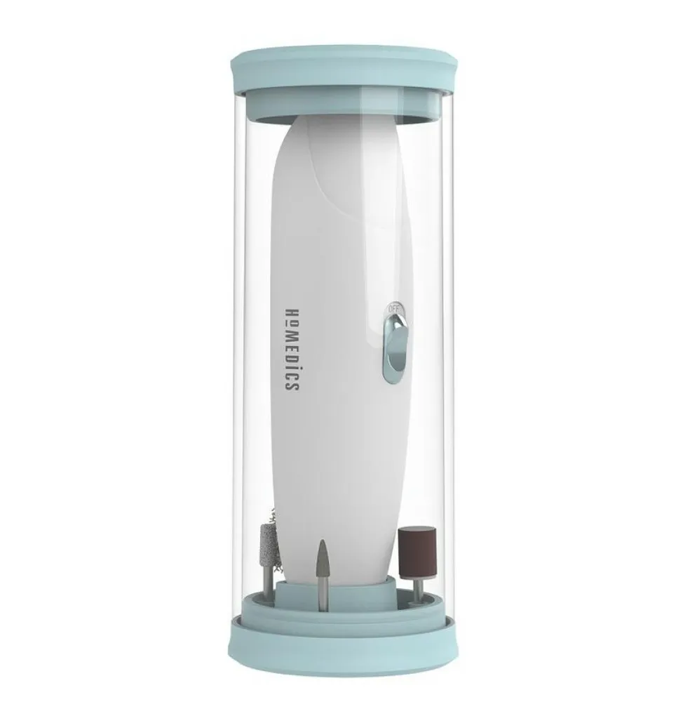Kompakt mani/pedicuresæt Tilbehørsdele medfølger til: Rense, reparere, forme og polere neglene Beholder medfølger til opbevaring af tilbehør Egnet både til kunstige og naturlige negle Indbygget LED lys. 2 års garanti 2 x AAA batterier medfølger