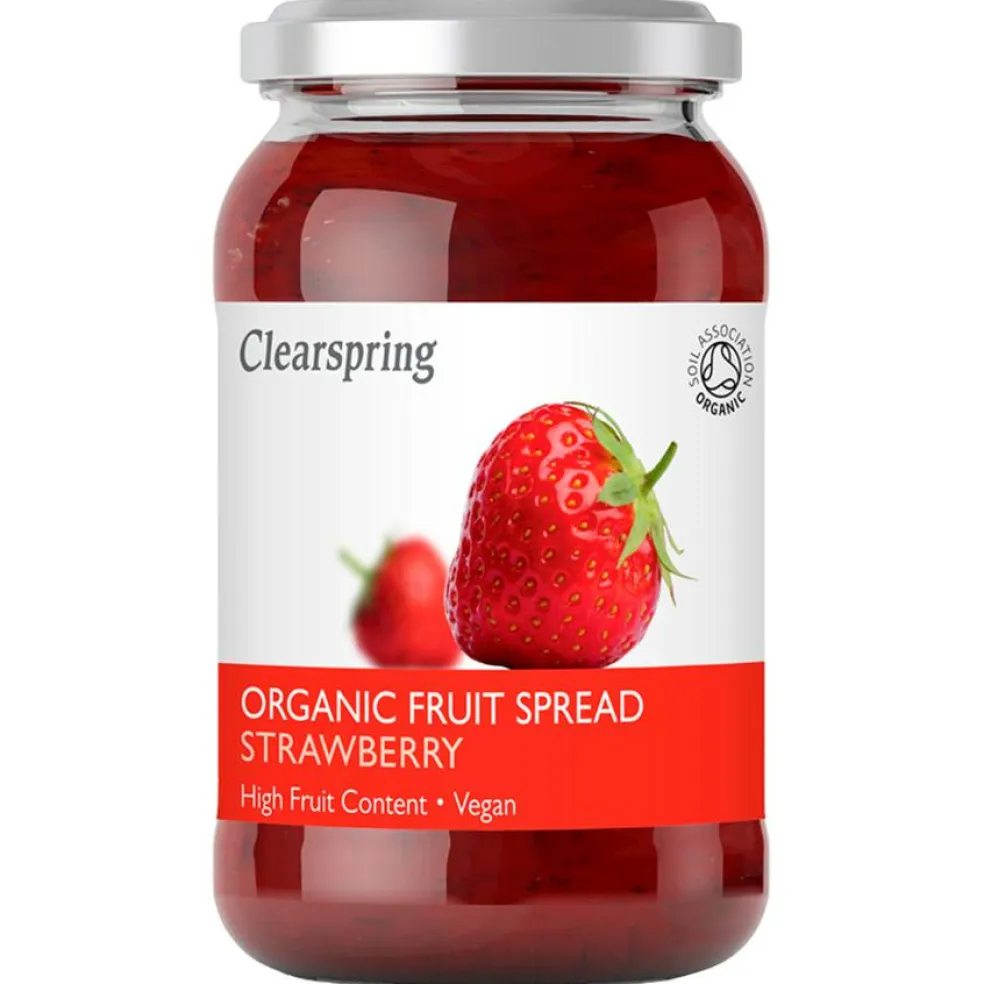 Clearspring’s lækre serie af Økologiske Frugtsmørepålæg består af mere end 50 % frugt og har en fyldig smag af frisk frugt. De er lavet af økologiske frugter og frugtpuré.