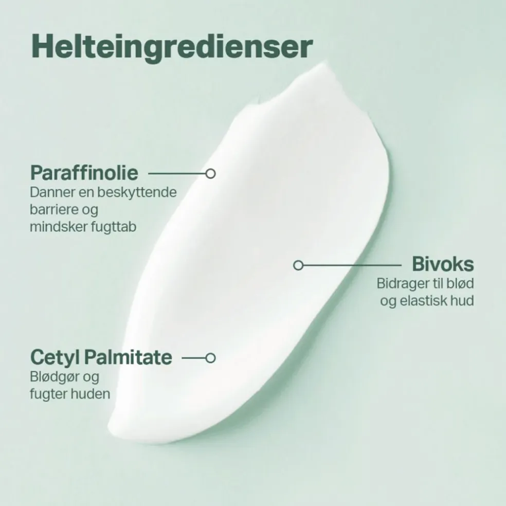 Cremen holder på hudens fugt og gør den blød og smidig, samtidig med at den lægger en beskyttende barriere.