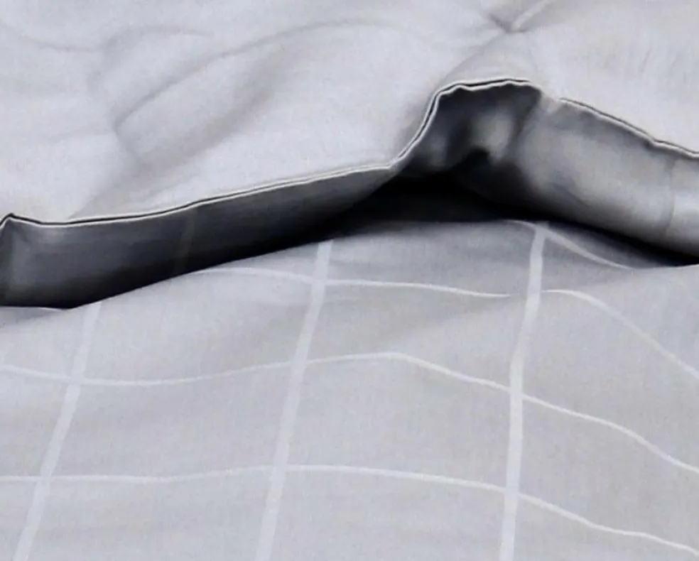 Satinvævning giver også en glansfuld overflade, der på sengesættet er brugt til at skabe et diskret og dekorativt mønster. Der drages stærke referencer til traditioner og med respekt for det gode håndværk.