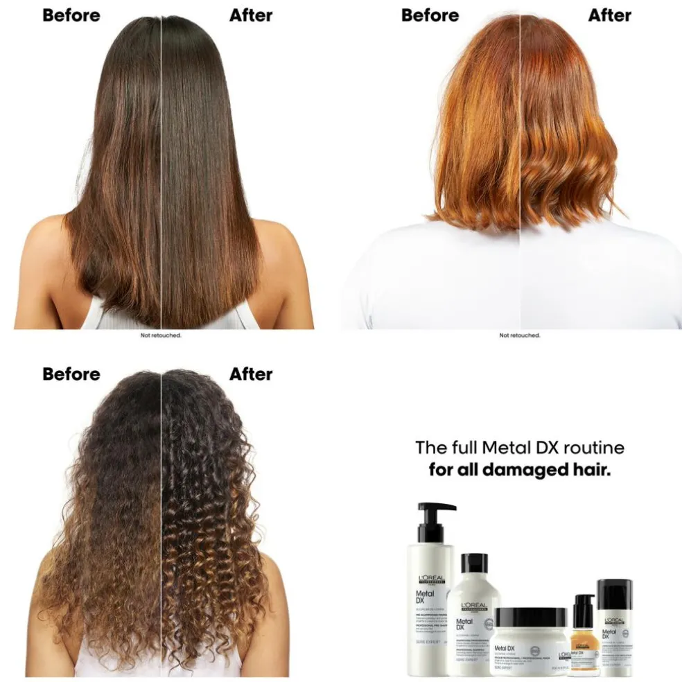 Denne koncentrerede olie er beriget med Glicoamin og beskytter håret mod ophobning af metalpartikler. Håret bliver øjeblikkeligt stærkere og mere næret. Efter kun én påføring: 97 % færre knækkede hår, 2x mere næret hår. Håret bliver mere fyldigt og disciplineret.* Metal DX concentrated oil er en del af Metal DX-serien, en anti-metal protokol som reducerer knækket hår og farveskift.