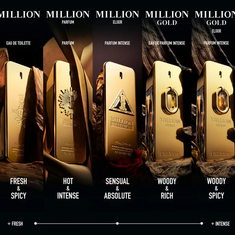 Million Gold Elixir fra Rabanne sætter guldstandarden for succes. Det kan aldrig blive for meget guld! Million Gold Elixir Parfum Intense er en koncentreret fortolkning af Million Gold. Han er essensen af luksus, og hans aura stråler så stærkt, at alt, hvad han rører ved, bliver til guld. Den maskuline signaturduft henter inspiration fra nicheparfumer og kombinerer tre nøje udvalgte stjerneingredienser: ren, likørlignende vanilje, frisk mandarin og den dybe varme fra sandeltræ.