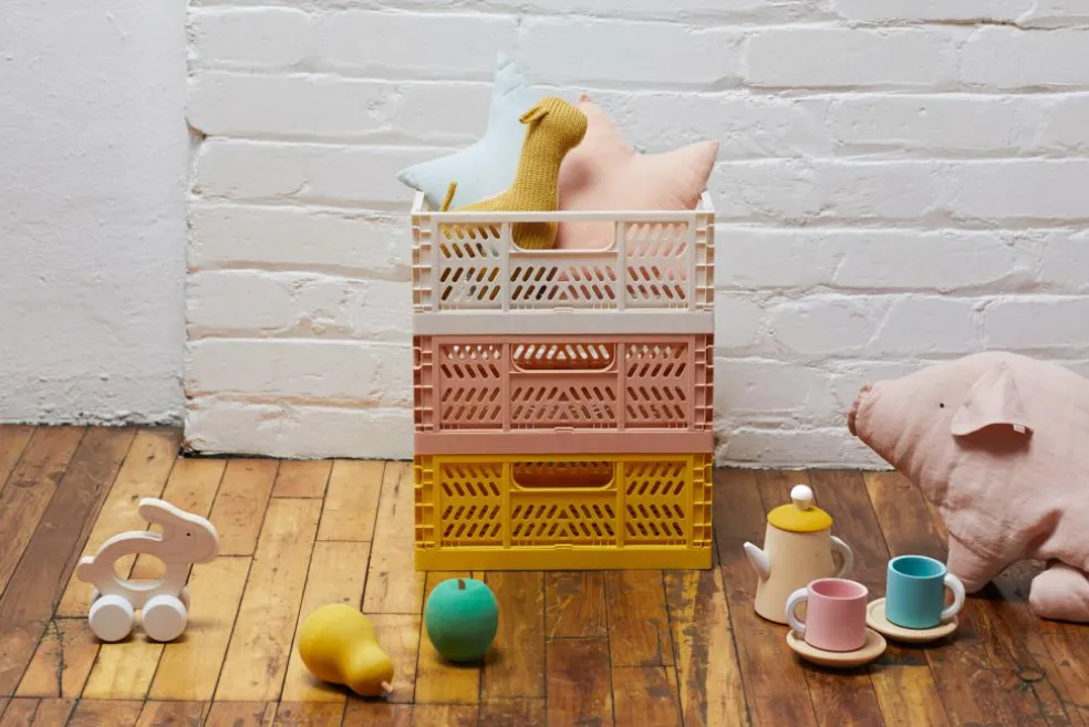 Foldekassen er let, stabelbar og perfekt til at holde sammen på hjemmets genstande og rod.