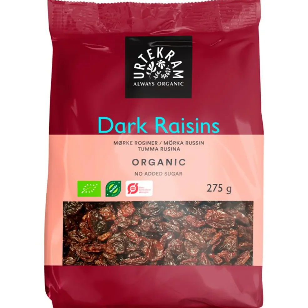 Urtekram økologiske mørke rosiner er klassiske på havregryn, skyr eller til morgengrøden. Vores mørke rosiner er af sorten hompson seedless og starter livet på vinstokkene som saftige, grønne druer. Helt naturligt med solens hjælp ender de som mørke skønheder.