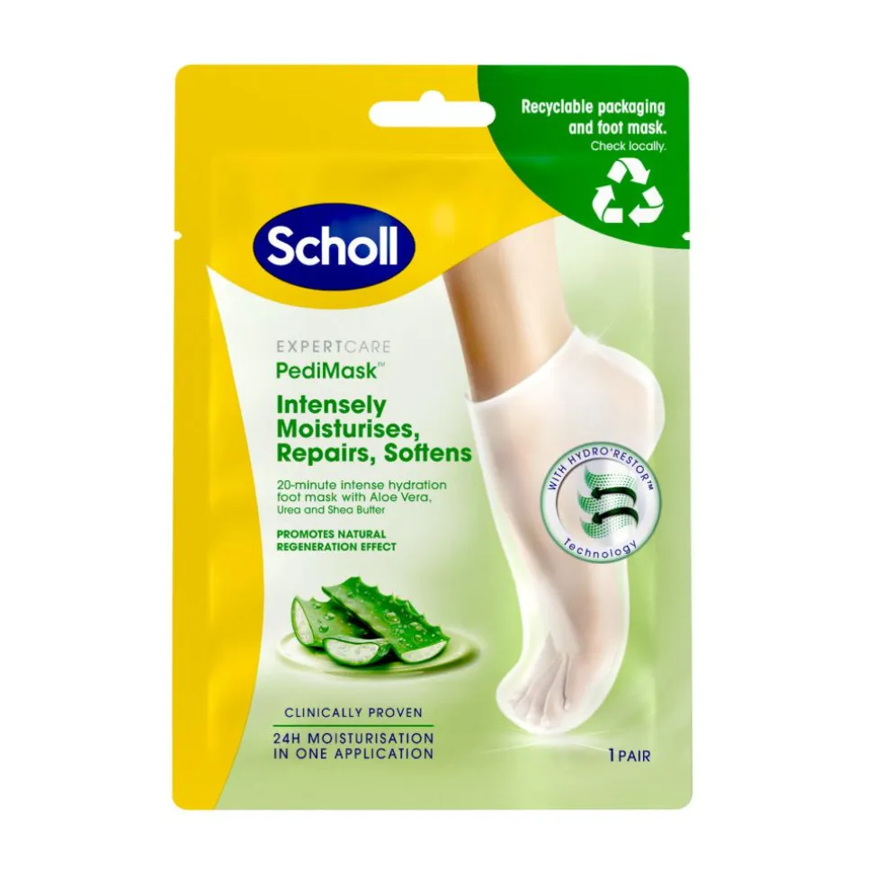 Eksperterne fra Scholl præsenterer en specielt udviklet maske, der giver fugt til tør hud på fødderne. Bløde og glatte fødder på kun 20 minutter Giver intens næring og en følelse af hydrering, der holder længe Let at bruge, fedter ikke 1. Tag fodmasken ud af posen. 2. Åbn forsigtigt forseglingen øverst på fodmasken. 3. Tag fodmasken på en ren, tør fod, og sæt sokken på plads med det påsatte klistermærke. 4. Fjern fodmasken efter 20 minutter, og massér den resterende creme godt ind.