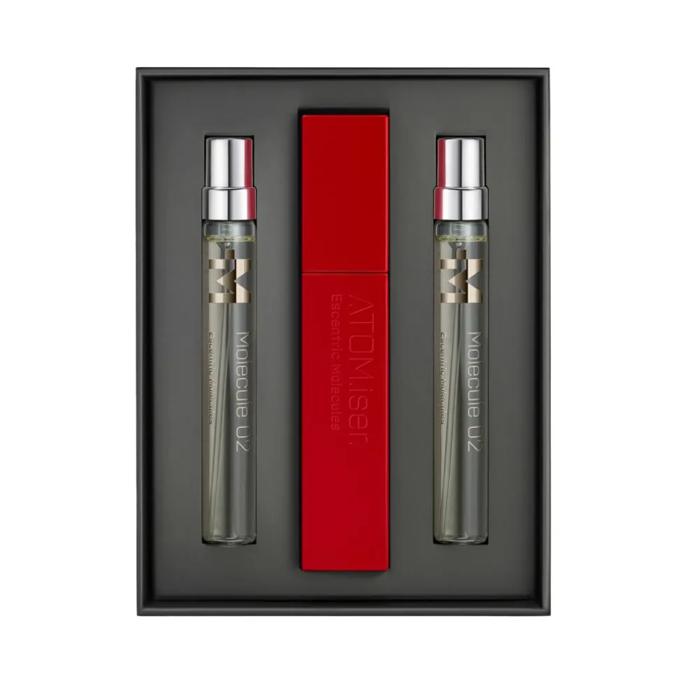 En ultimativ kunstaccessory, ATOM.iser., er et luksuriøst, rejsestørrelse duftetui designet til holdbarhed og skabt til at løfte din livsstil på farten. Den twist-and-spray mekanisme sikrer, at din yndlings-EM-duft altid er lige ved hånden. Det slanke metal er omhyggeligt sandblæst med rustfrit stålsand for at polere overfladen til en blød glans og er derefter anodiseret for langvarig holdbarhed. En perfekt fusion af praktisk funktionalitet og elegance, hver ATOM.iser. indeholder 8,5 ml duft og kommer med to ekstra refiller, så du kan bære din duft nemt, uanset hvor livet fører dig.