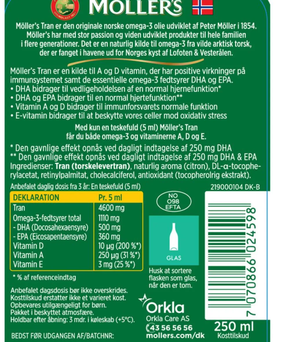 Torskelevertran er naturens egen kilde til omega-3 fedtsyrer og vitaminerne A og D.