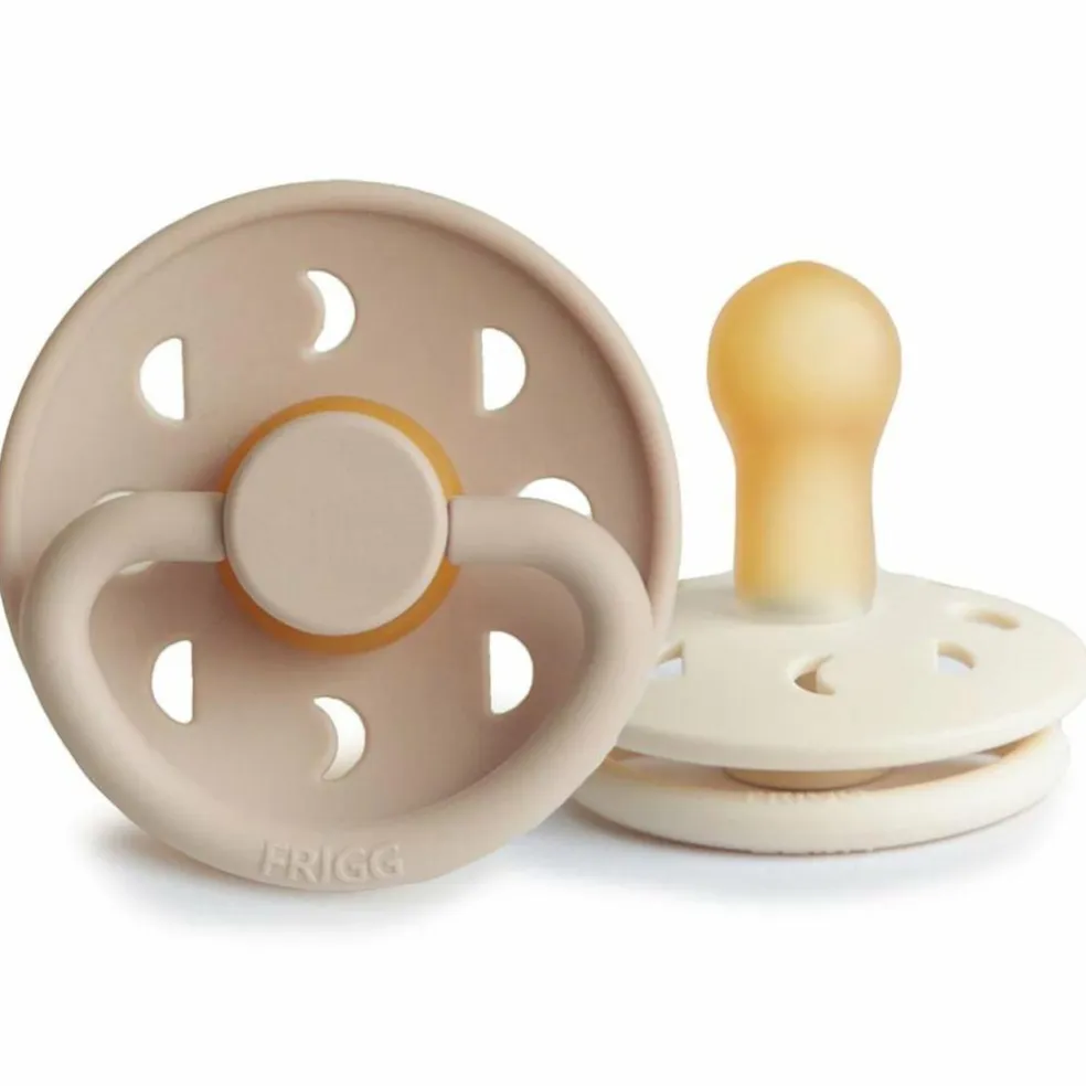 De runde Moon Phase-sutter fra FRIGG er en klassiker, der er elsket af mange. Denne runde form minder om moderens bryst og giver barnet en naturlig og tryg fornemmelse. Derfor vil mange børn acceptere den runde sut med det samme, den tilbydes.
