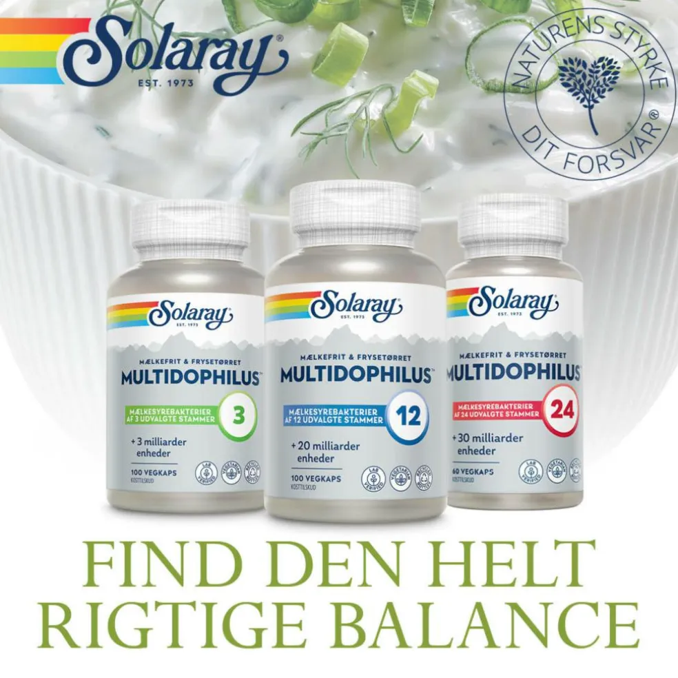 Hver kapsel indeholder 24 udvalgte stammer af mælkesyrebakterier, 2 kapsler giver tilsammen 30 milliarder levende bakterier*.