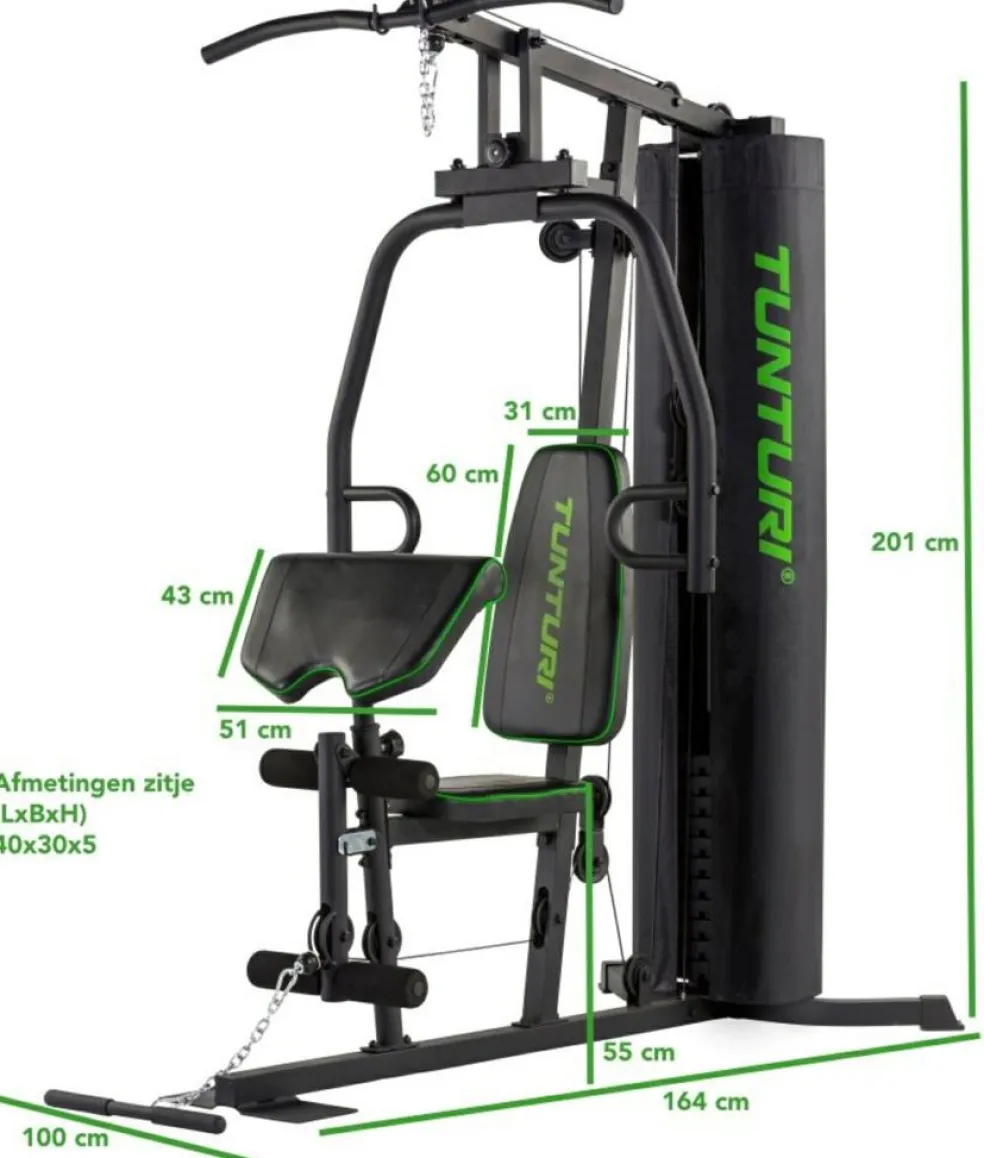 Brystpress og butterfly brystpress for stærke arme og brystmuskler. Udstyret med en bentræner for en grundig benøvelse.