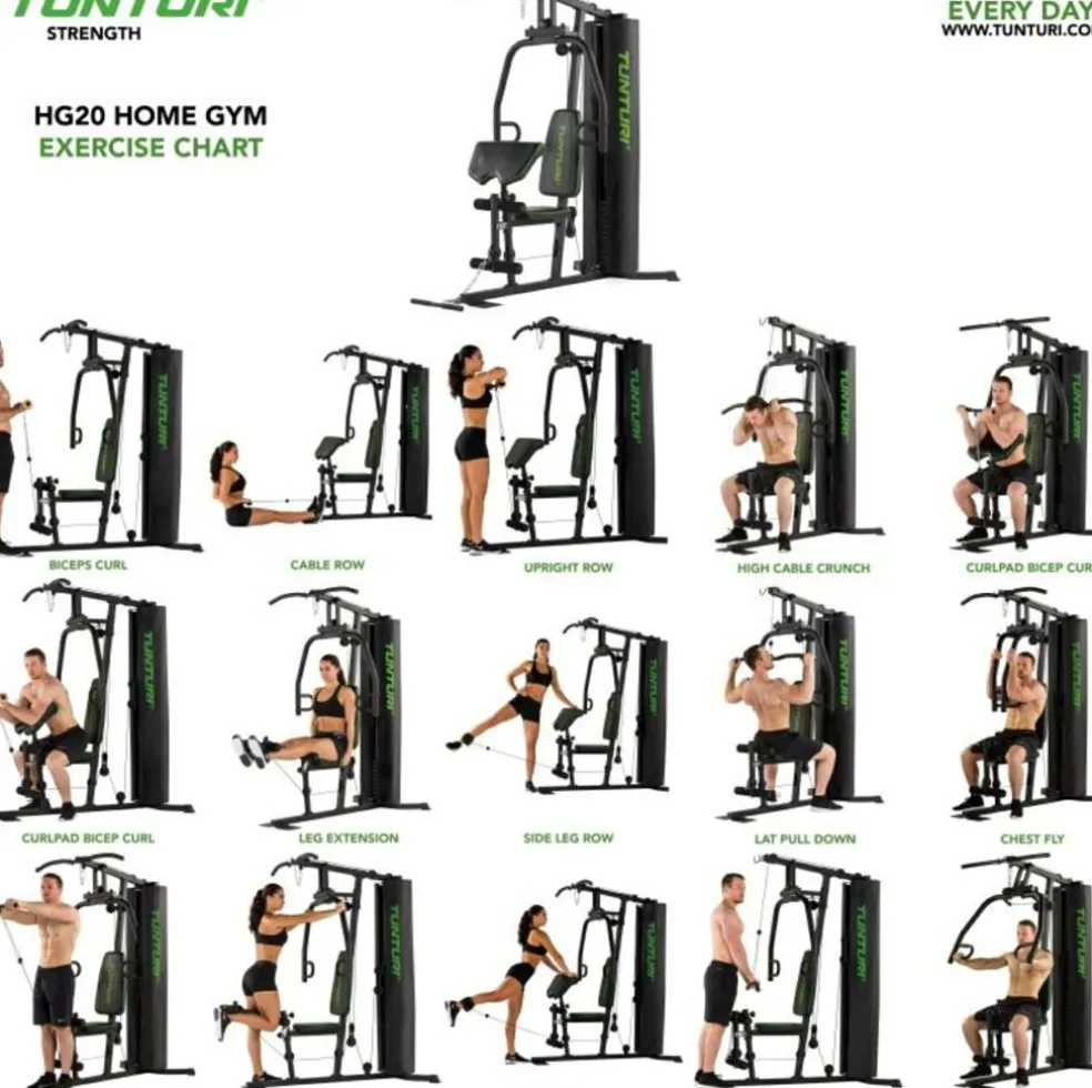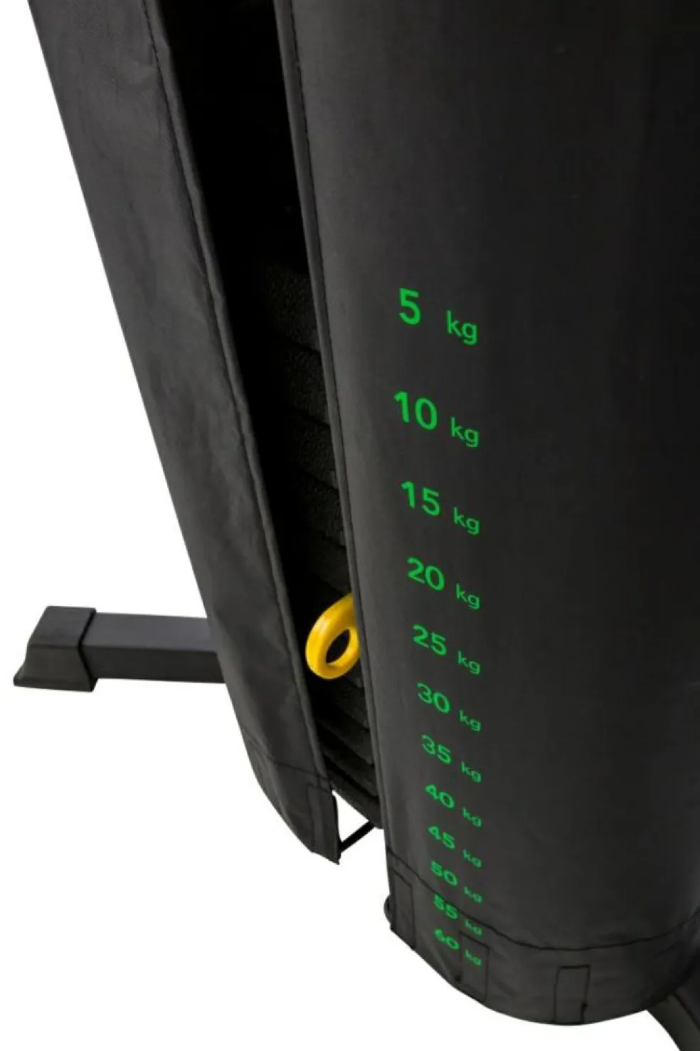 Ideel til hjemmebrug, uanset om du er nybegynder eller avanceret. Vægtstak med dæksel for at reducere støj under træning. Brug karabinhage til nem fastgørelse af træningshåndtaget.