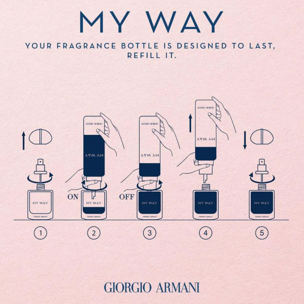 Den er omkranset af en gylden ring, der er præget med Giorgio Armanis signatur, et symbol på den unikke vej der er oplyst af alle de unikke oplevelser vi møder på vejen.