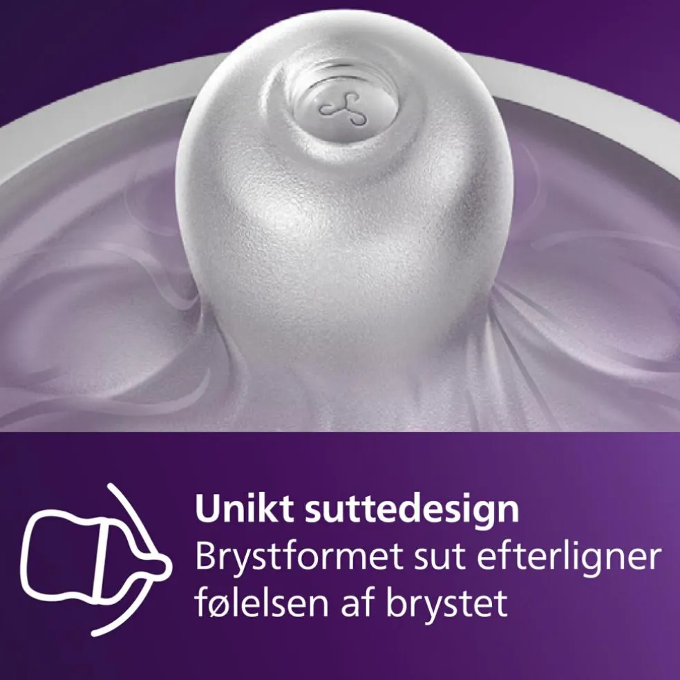 Natural Response-sutten passer til din babys naturlige sutterytme, hvilket gør det nemt at kombinere amning og sutteflaske.