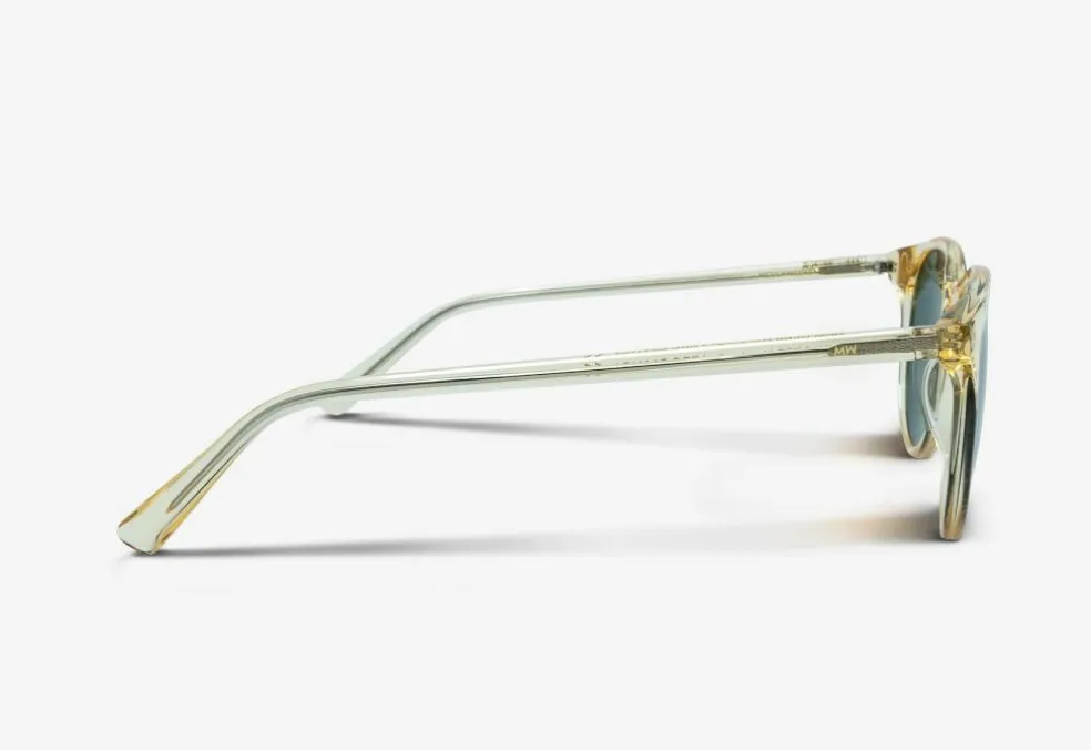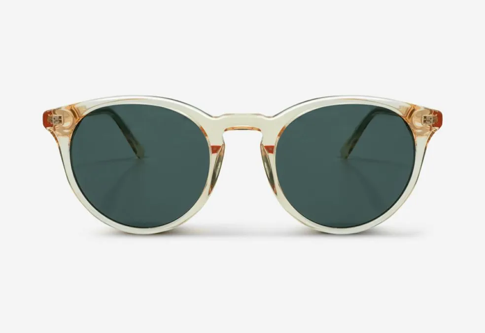 Solbrillerne er lavet af håndlavet acetat og er designet i Danmark af en lille dansk virksomhed. Solbrillerne har nickel-fri hænglser, fuld UV400A+B beskyttelse og kommer i en hvid æske med en mikrofiberpose som også kan bruges som pudseklud.