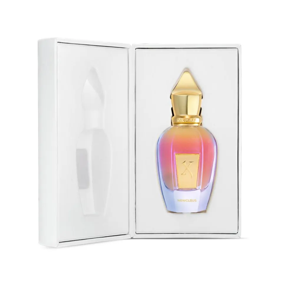 Hyld duftrevolutionen! Længe leve parfumefriheden! House of Xerjoff står igen på barrikaderne for at sikre den spirende forandring i verden af haute parfumerie med ‘Newcleus’ på sine bannere. Denne revolutionerende eau de parfum er baseret på en alkoholfri formel. Duften er indkapslet i mikroskopiske alginatperler lavet af marine alger, takket være den banebrydende Perfume Pearls™-teknologi, og den dyrebare duftolie frigives kun, når den påføres huden – ligesom champagnebobler, der kildrer ganen og eksploderer i et sensationelt fyrværkeri af nydelse. Specielt formuleret til at passe selv den mest følsomme hud uanset årstid og temperatur, med en beroligende effekt takket være dens geniale plantebaserede olier.Det blomstrende hjerte af ‘Newcleus’, overdynget med tusind rosenkys, smelter sammen med udsøgte gourmand-akkorder af luftig mælkeskum, blød vanilje, delikat hvid moskus og sart karamel, hvilket skaber et mesterligt duftværk som intet andet. En superstjerne er tændt på haute parfumeries himmel, og den skinner som et fyrtårn af innovation og ny energi: et tilsyneladende uopnåeligt ideal fejret for sin unikke brusende perlage – en funklende perlemorsglans inde i den ikoniske krystalflakon designet af Xerjoff.Nyt liv. Nyt DNA. NewCleus. Pun intended.Topnoter: Bløde rosenblade, morgendug, mælkeskum, skumfidusHjertenoter: Bløde rosenblade, karamel, hvid moskusBasenoter: Bløde rosenblade, vanilje, sandeltræ, hvid moskus