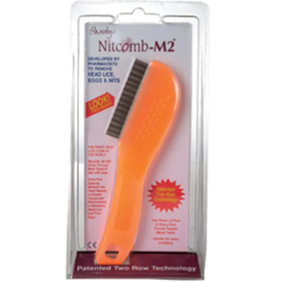 Med 2 rækker rustfrie ståltænder med afrundede spidser. En række med bredt mellemrum mellem tænderne fjerner de store hovedlus, og en række med smalt mellemrum mellem tænderne fjerner de indre, æg og æggeskaller.