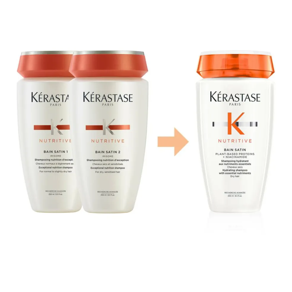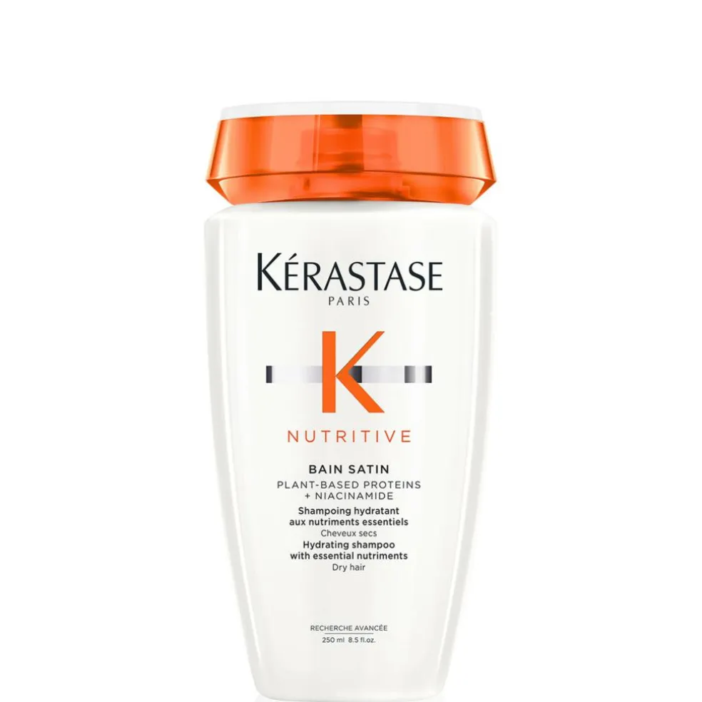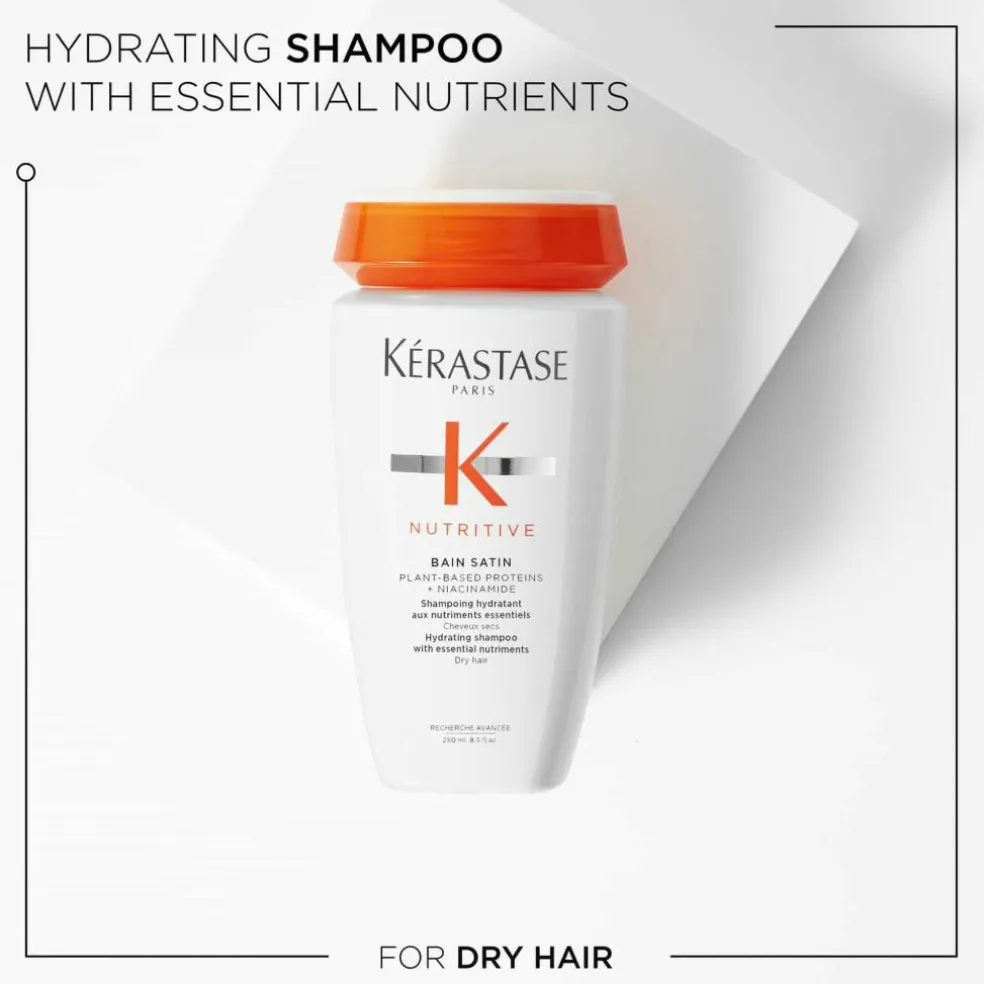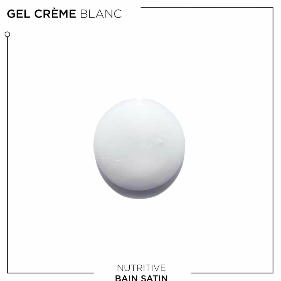 Nutritive Bain Satin har en cremet, hvid gelkonsistens og giver en let, velplejet følelse, hvilket gør den ideel til tørt hår.