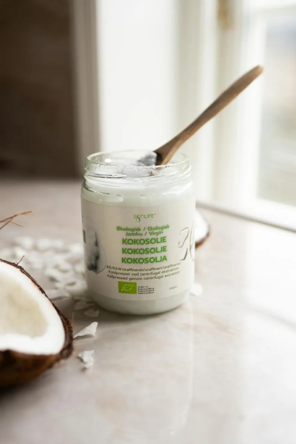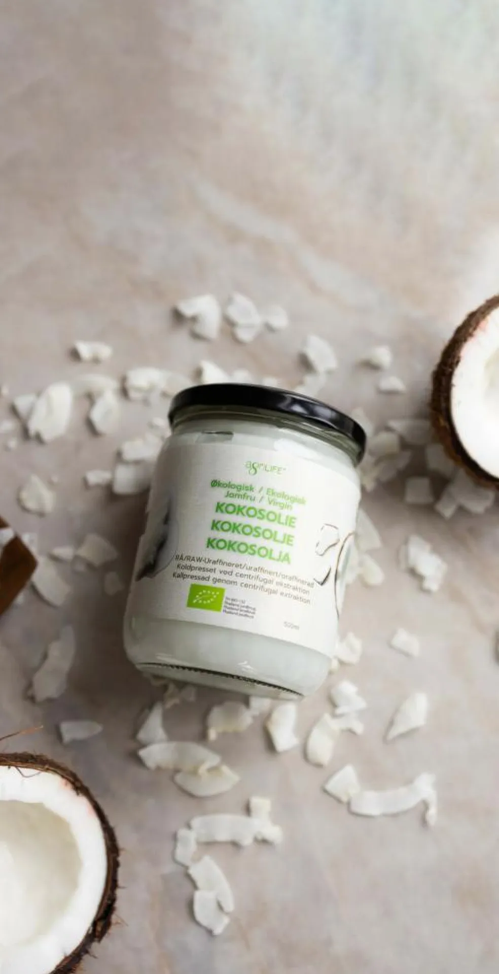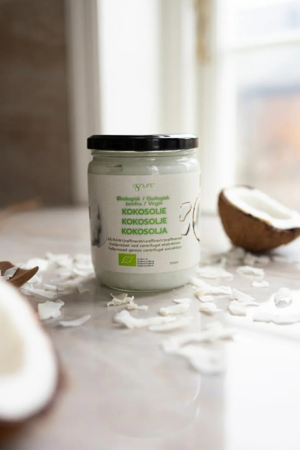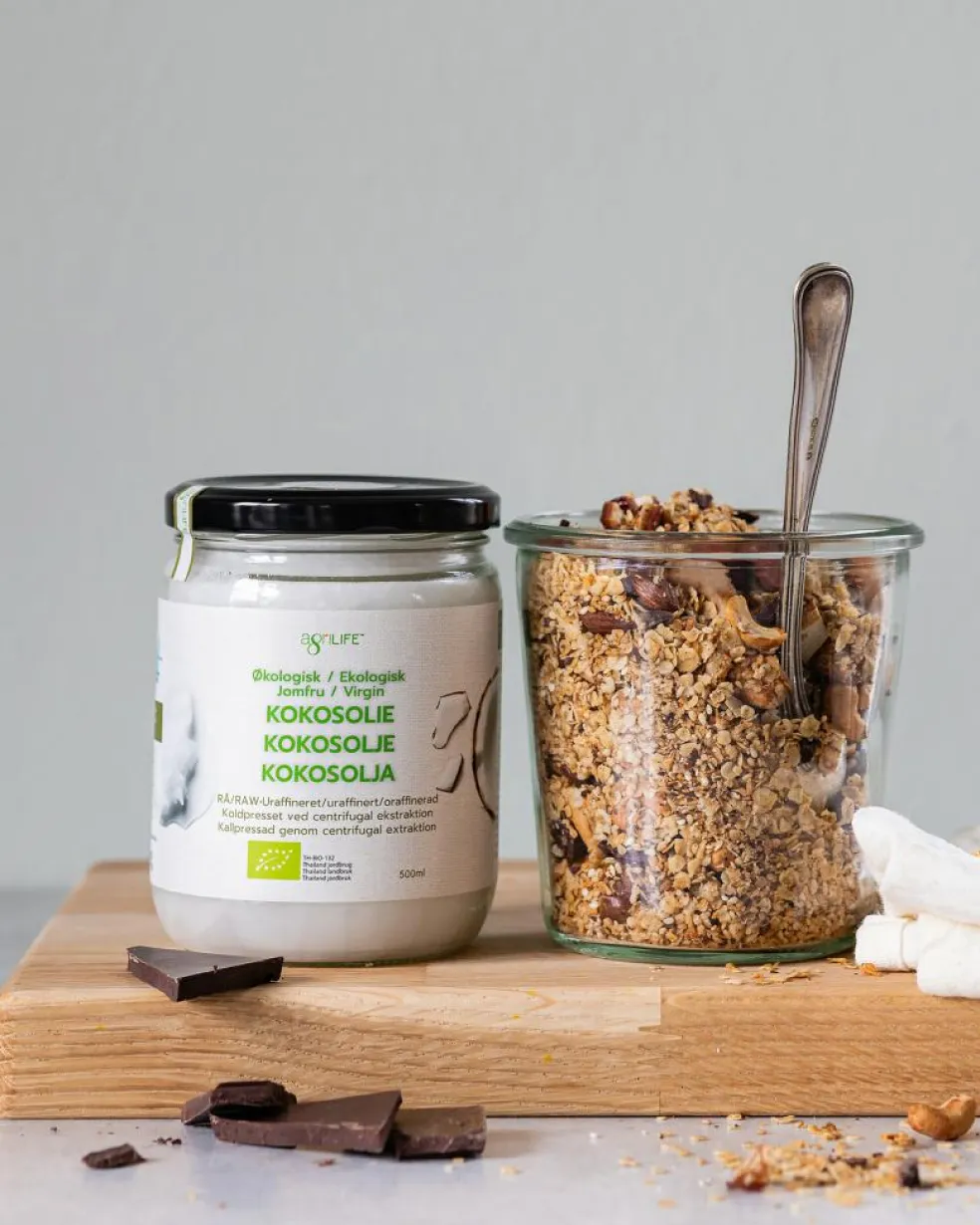 agriLIFE jomfru kokosolie ekstraheres fra frisk kokoskød høstet fra modne håndplukkede kokosnødder. Kokosnøddernes friskhed er afspejlet i den silkebløde smag. Kun fuldt ud modne thailandske kokosnødder behandles inden for 3 timer efter at kokosnødden er blevet åbnet. I kraft af et effektivt filtreringssystem er resultatet en olie som er krystalklar med silkeblød smag og uden sedimentering.