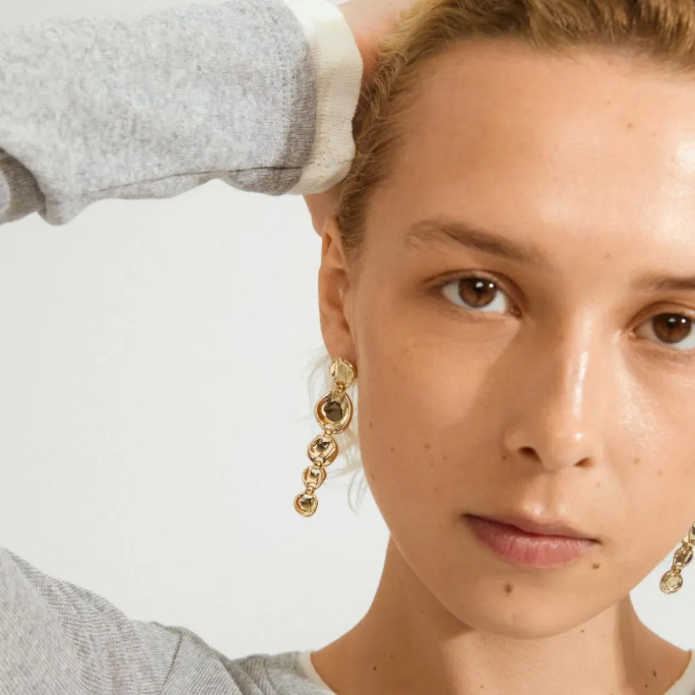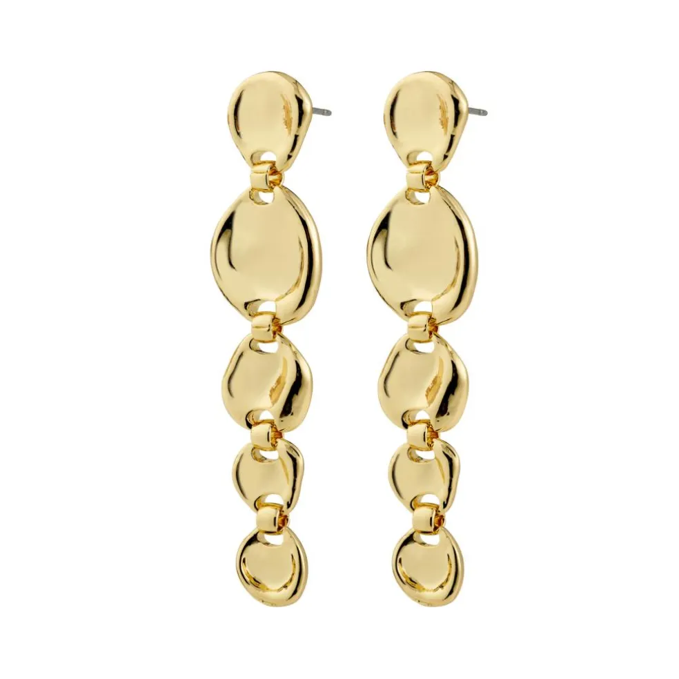 De guldbelagte SPARKLE øreringe fra Pilgrim er dine next level party accessories. Lange, bevægelige vedhæng giver dit look en cool vintage edge, mens øreringenes uneven overflade leger med lyset og skaber et naturligt sparkle. Perfekte til både glam moments og et effortless everyday look, der skal piftes op med et classy touch.