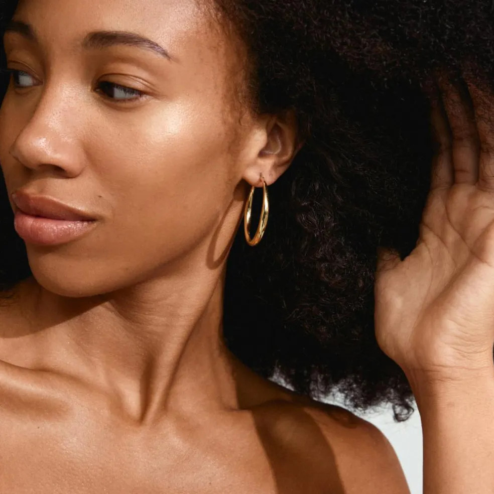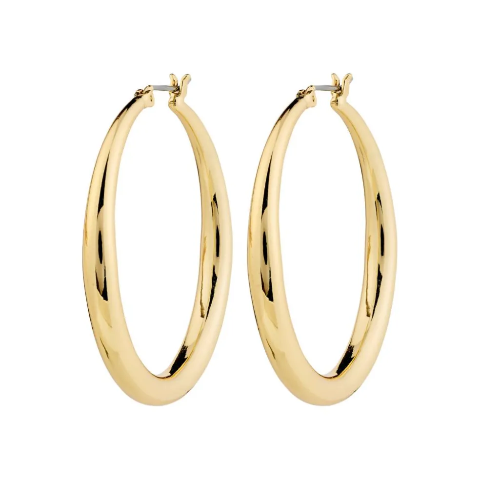 Perfect simplicity! Guldbelagte hoops med en diameter på 40 mm. Et sæt evergreens, der aldrig går af mode – uanset din style og occassion har du her et oplagt go-to, der passer til hele din garderobe. Kombiner gerne de store hoops med studs og ear cuffs med farverige perler og sten for at skabe et personligt udtryk. Øreringene er fremstillet af 98% genanvendt materiale – et stylingvalg du kan være stolt af.