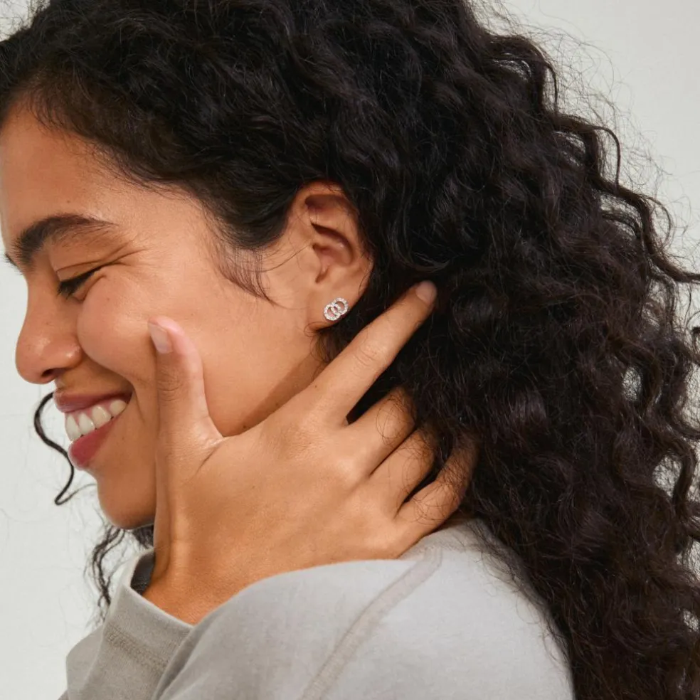 Double the sparkle, med de funklende JOLINA øreringe fra Pilgrim. Her får du sæsonens beauty hack: Et sæt små sølvbelagte ørestikker, designet som to sammenflettede halo’s, dekoreret med funklende Preciosa-krystaller. Dit go-to, når du vil tilføje lidt effortless sparkles til dit look. Og guess what – øreringene er fremstillet af 82% genanvendt materiale, – et styling-valg du kan være stolt af.